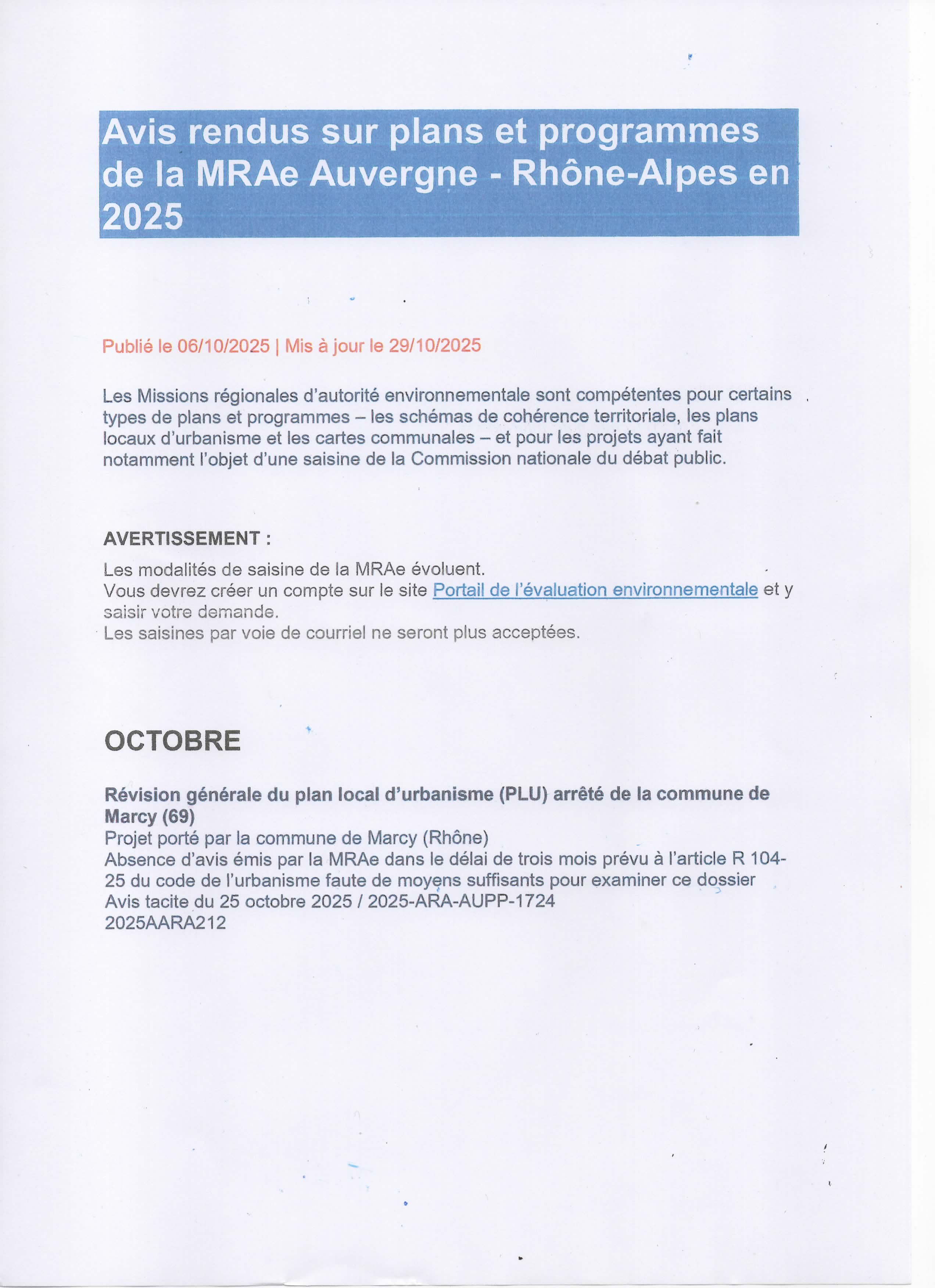 13-Avis tacite de la MRAE concernant le projet de révision du PLU de Marcy-sur-Anse